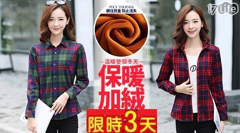 【年終回饋】大尺碼修身保暖格紋加絨長袖襯衫-